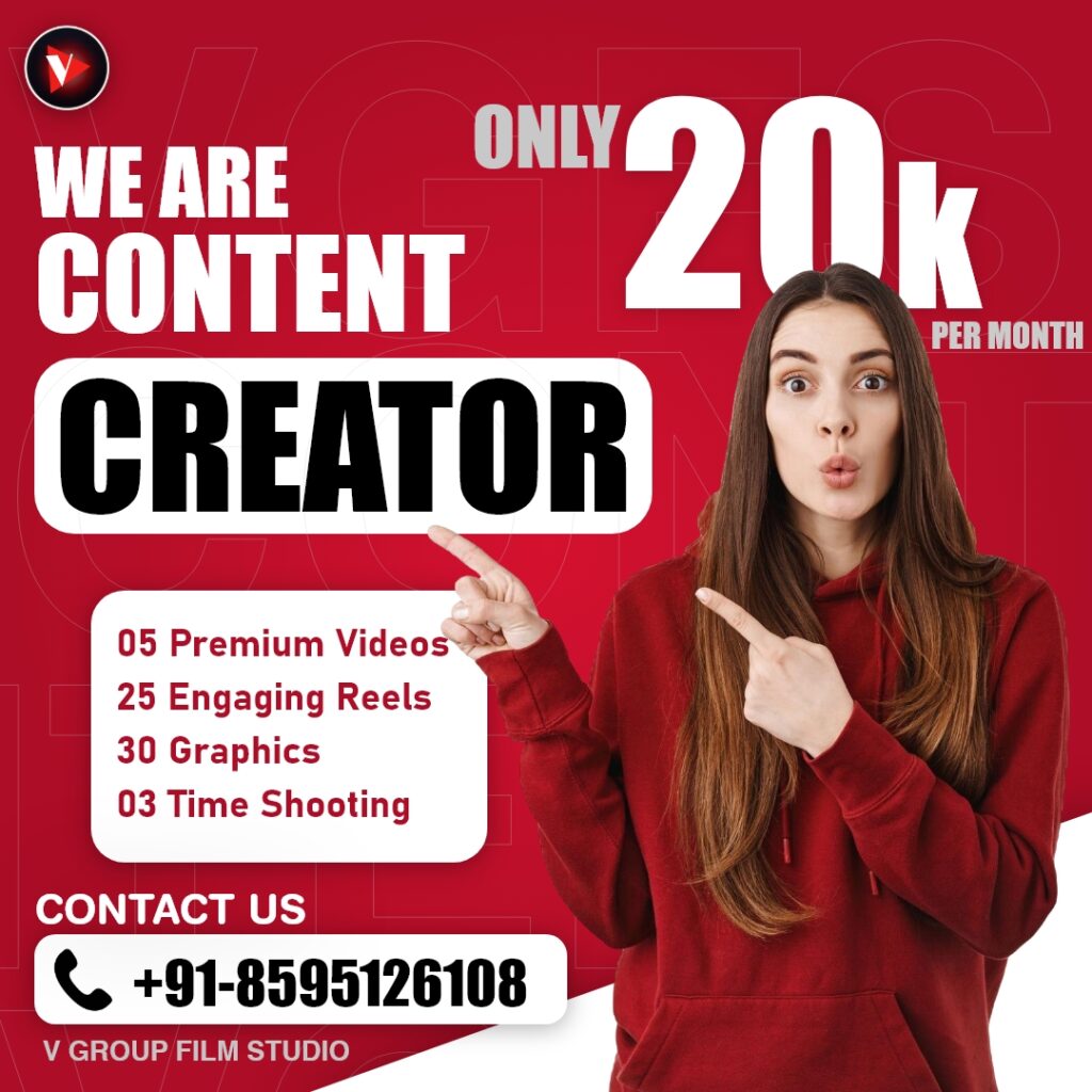 At a Delhi NCR best video production house, V Group Film Studio. Our Vision is to be an innovator in the Whole World of cinematic storytelling by busting down limits and delightful audiences worldwide with unique narratives. By blending modern techniques and artistic talent with corporate films, music videos, social media reels, or short-form videos, we aim to push creative limitations. We transform creativity into compelling visual narratives that captivate and inspire through cautious post-production. We are based in Delhi NCR and desire to make the world more imaginative and connected by promoting variety, embracing technology, and making classic films that appeal to all generations.